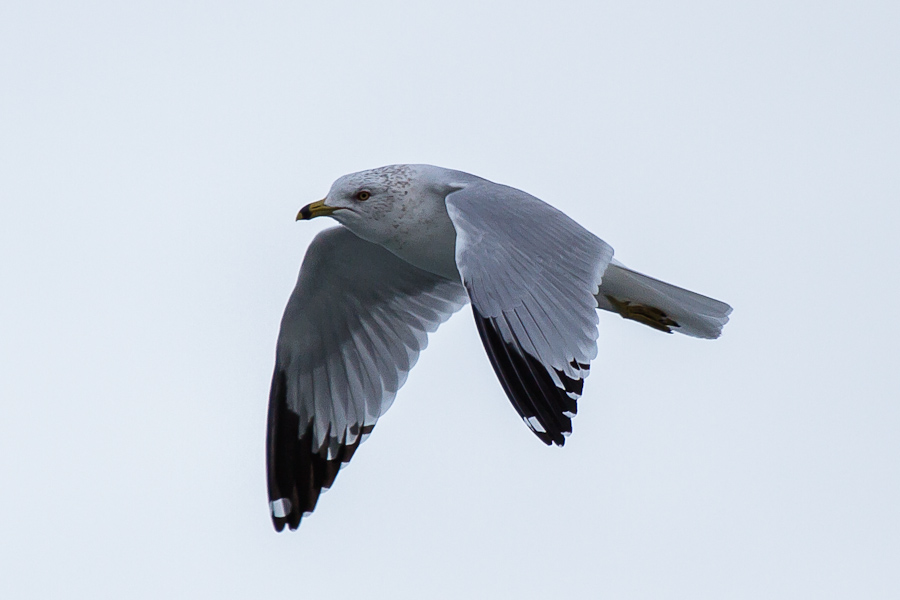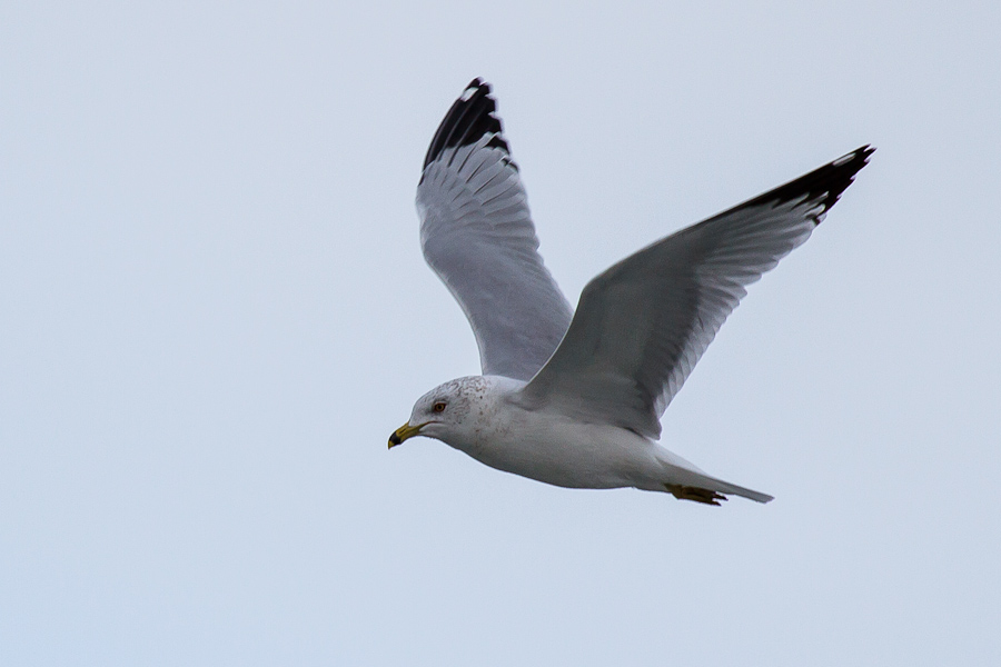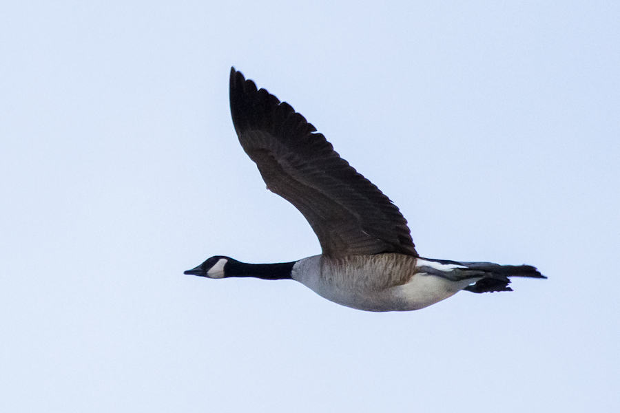I managed to get some good shots of the gulls (Ring-billed gulls in this case…I did not see any other types of gulls), the geese, and of a Red-tailed Hawk. The gulls are fairly easy to photograph in flight…they don’t zip around as fast as the ducks and geese. They tend to float around looking for the next meal they can steal or scavenge. Feisty little birds, for sure. The geese are a rather boring bird in the grand scheme of things (at least around here, they are everywhere this time of year), but they were an interesting subject today.
