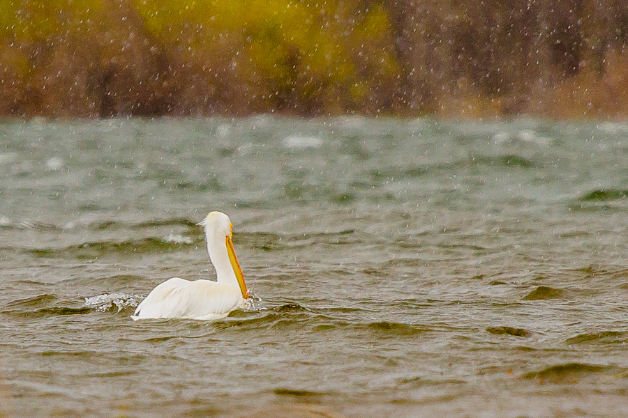 The day started out ok…when I left my house shortly after 9am it was a little overcast, however there was spotty sun and it looked to be clearing, which would have meant for a nice, partly sunny day (good lighting for photography.) By the time I reached Chatfield, almost an hour later, the sky had darkened considerably. By the time I parked, set up my camera, and started hiking around the riparian areas just south of the lake, it was raining a cold rain. Throughout the rest of the day, I would see pretty much every kind of spring weather one could imagine: rain, sleet, snow, and a couple of times even dime-sized hail! The winds varied from non-existent to nearly-knock-you-off-your-feet 80mph blasts, turning cold sleet into natures icy sandblasting. The featured photo of this article demonstrates the hellish weather, along with the most ubiquitous, and for that matter resilient, resident of Chatfield: The American White Pelican.