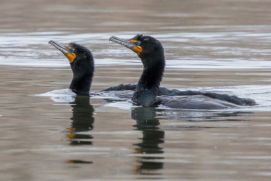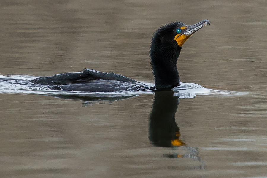 On the flip side, Cormorants are rather fearless birds, and there were plenty of them around to photograph instead. Near the end of the day, after hiking around for hours on end, I decided to give my feet a rest and sat down on the shore of an inlet. It didn’t take long for all the birds in the area to become accustomed to my presence, and they swam nearer and nearer. That gave me the opportunity I was looking for, and I managed to capture some photos detailed enough to show off the amazing blue eyes of the Double-Crested Cormorant.