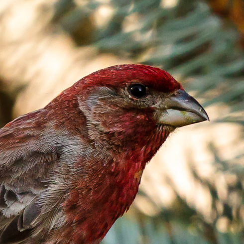 To start things off, I’m featuring the first shot in my Backyard Birding endeavors: A male House Finch, resting on the branch of a fir in my yard. This shot was actually a little unexpected, as I had my camera out to photograph something else, and the bird landed mere feet away giving me a prime opportunity to photograph it in full detail. This shot was the bird that inspired me to start my backyard birding, and I hope to present many more detailed photographs of my avian visitors throughout the next few months.