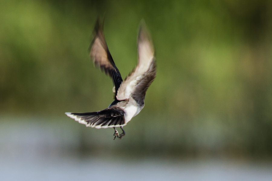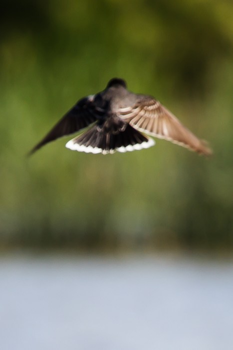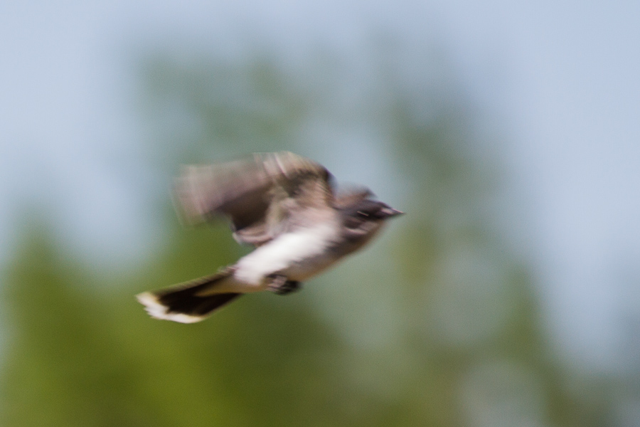 As you can see, the before and after are great, but the bird in flight is completely blurry. I’d probably need a 1/2500 shutter speed and an f/10 aperture to really capture a Kingbird in flight properly, which a rather rare thing to achieve (needs a LOT of light.) I kept trying though, managed to capture some interesting blurry flight shots with interesting boke. I actually like the first one…almost looks like a painting, maybe oil or gouache.