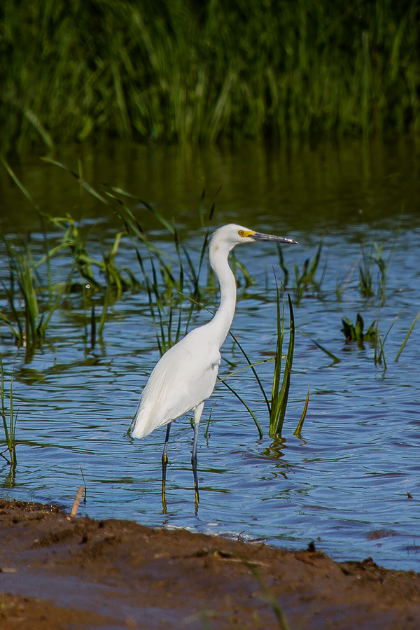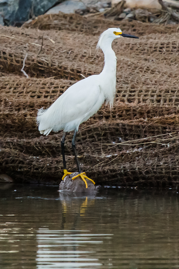 These brilliant white waders love the shallow waters of the various Cherry Creek wetland areas, as well as the shallower shores of the lake. Their black bills and the yellow patch around their eyes give them away as Snowy Egrets, where as Great Egrets, a larger variety, have entirely yellow bills most of the time (with a green patch around their eyes during breeding season). Sadly, Great Egrets don’t spend much time in Colorado…it is one of the few states, including Colorado, Utah, Wyoming, and Montana, that they don’t frequent. While I love their smaller and more delicate cousins, male Great Egrets have quite an amazing display during their mating season that I’d love to photograph. (I guess that will have to wait for some future bird photography trip.)