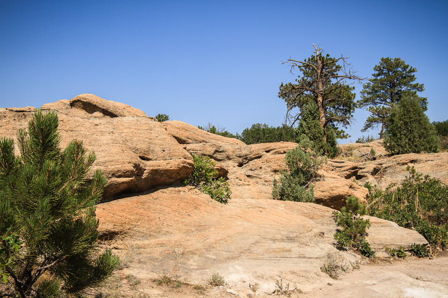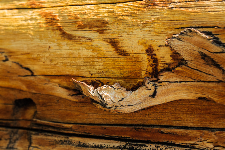 A tribute to the loss of water in Castlewood Canyon in recent years, there are numerous husks of dead pines scattered about. They appear to have simply died, as there is no clearly visible fire damage. They do make for an intriguing photographic subject, however! The forms of wood and wood grain are really quite beautiful, especially when its color is still rich and vibrant.