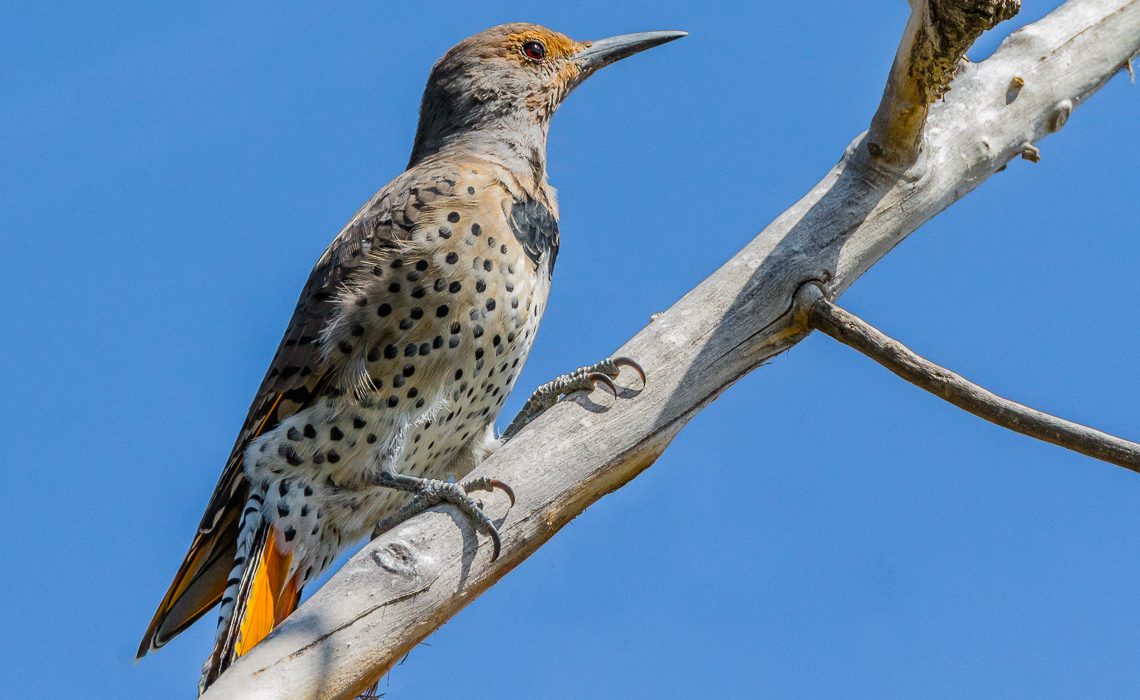 | 3 imagesOut in Cherry Creek is a great big dead tree. It is a hangout for certain kinds of birds though. A Northern Flicker can usually be found there, and periodically one of the beauties of the small hawk world, an American Kestrel, can be found hunting around there as well. I managed to capture photos of both, framed against a deep blue sky, in September last year with a hand-held, rented EF 300mm f/2.8 L IS II w/ EF 2x TC III (600mm combo). Nearby, a Western Kingbird hunted flys from a power cable.