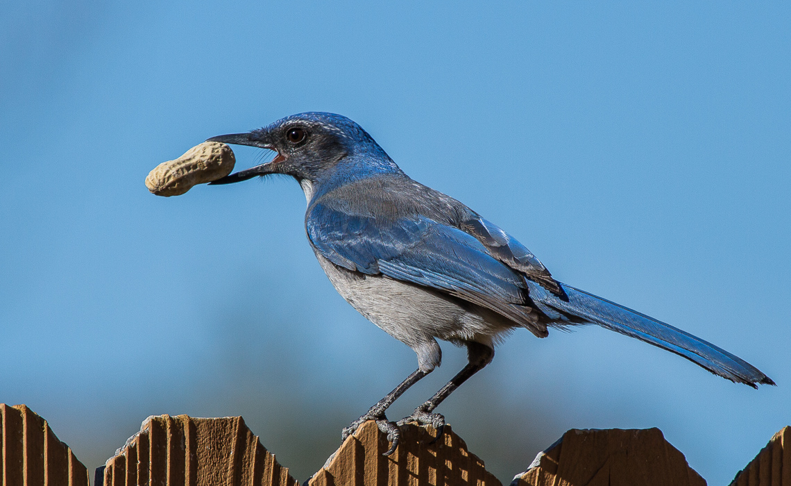 This fall, a number of jays showed up in my yard. At first there were the beautiful Blue Jays. I tried to get some photos of them, but they seemed to be rather shy, and I was never able to capture any good shots. For a few days, a couple other jays moved in. I saw and heard a couple of Stellar’s Jays. A little after that, a Scrub Jay moved in. The thing about jays? They LOVE peanuts. Not just the seeds themselves, though. If you happen to have any peanuts in their shells, don’t take your eyes off ’em! You might find they’ve been snatched if you do!
