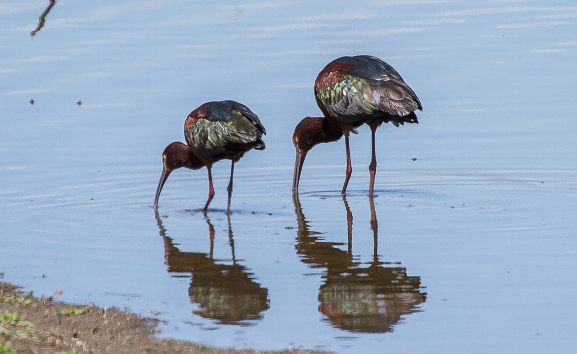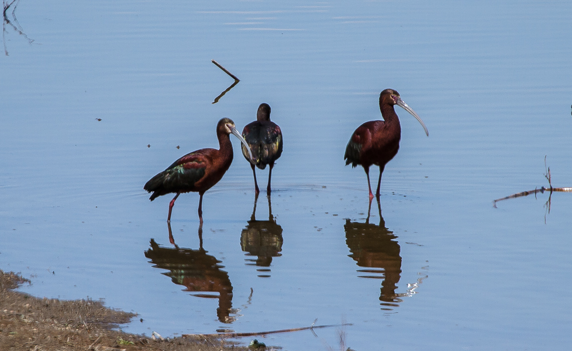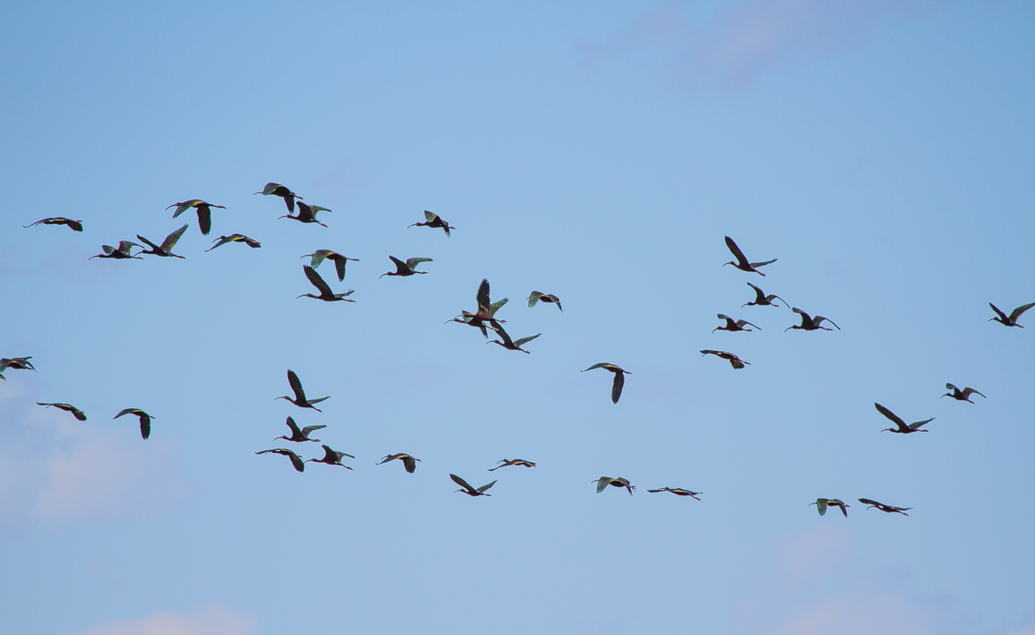 | 4 imagesLast week, when heading out to photograph shorebirds, I came across a number of Ibis, in this case White Faced Ibis, at the Cottonwood Creek pond. These birds drew a number of viewers, as they have not been seen in numbers at Cherry Creek for a while. While watching, a large group of at least 50 to 60 flew up from the other side of the pond. A few minutes later, two more groups, at least 30 strong, also flew by, for a total of at least a hundred Ibis.
