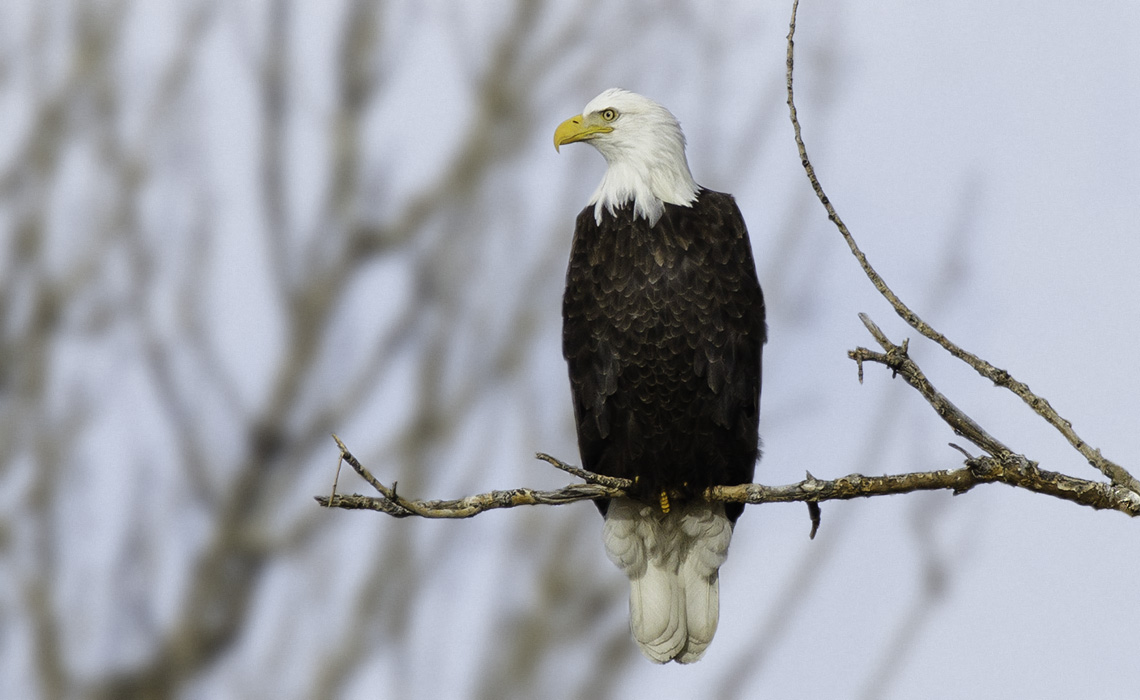 As a bird photographer, I am often presented with the situation where an amazing bird is perched in front of a terrible background, and there is no way to really change that fact. In order to properly expose the shot, keep the subject properly illuminated, and compose in an artistic way, sometimes you just have to deal with a terrible background. In some cases, a better lens can largely solve the problem…using a longer lens with a wider aperture will usually result in a blurrier background, however such lenses often cost thousands or tens of thousands of dollars. Sometimes, you just have to make do with a lesser lens, and sometimes even a $10,000 lens can’t really change your circumstances. Several of my recent uploads of Bald Eagles are examples of this kind of situation. What may not be obvious from the recently uploaded Bald Eagle gallery is that all of those photos originally looked something like this: