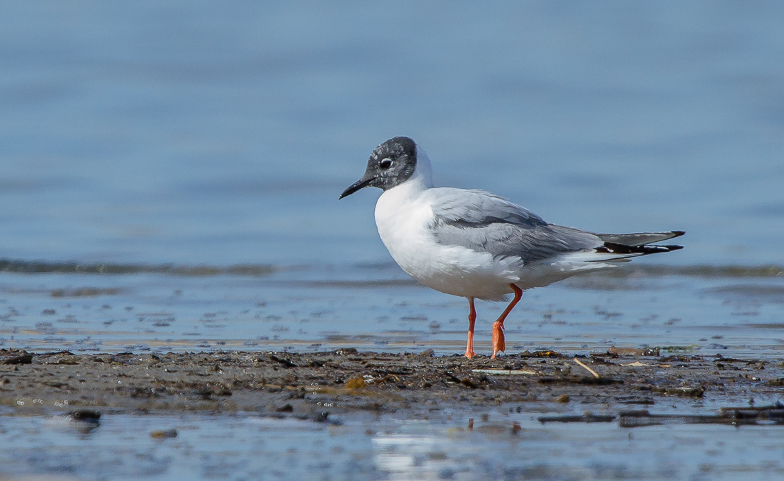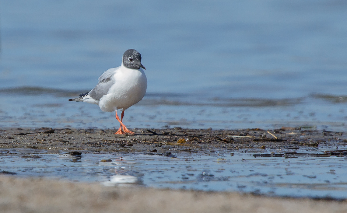 Another bird, one I’d never seen before, that showed up on Saturday was a number of Bonaparte’s Gull. These are a smallish gull, black head, black bill, gray feathers, and reddish feet. At first I thought Black-headed Gull, but according to Sibley’s Guide they are definitely Bonaparte’s. Seems they are migrants, as they don’t stay here…they are one of the many birds that summers along the northern shore of North America. Probably a great species to see at Barrow Alaska (one of our countries greatest birding spots, with hundreds of species of bird during the summer.) The gallery attached to this post shows a few of the photos I took of this Gull.