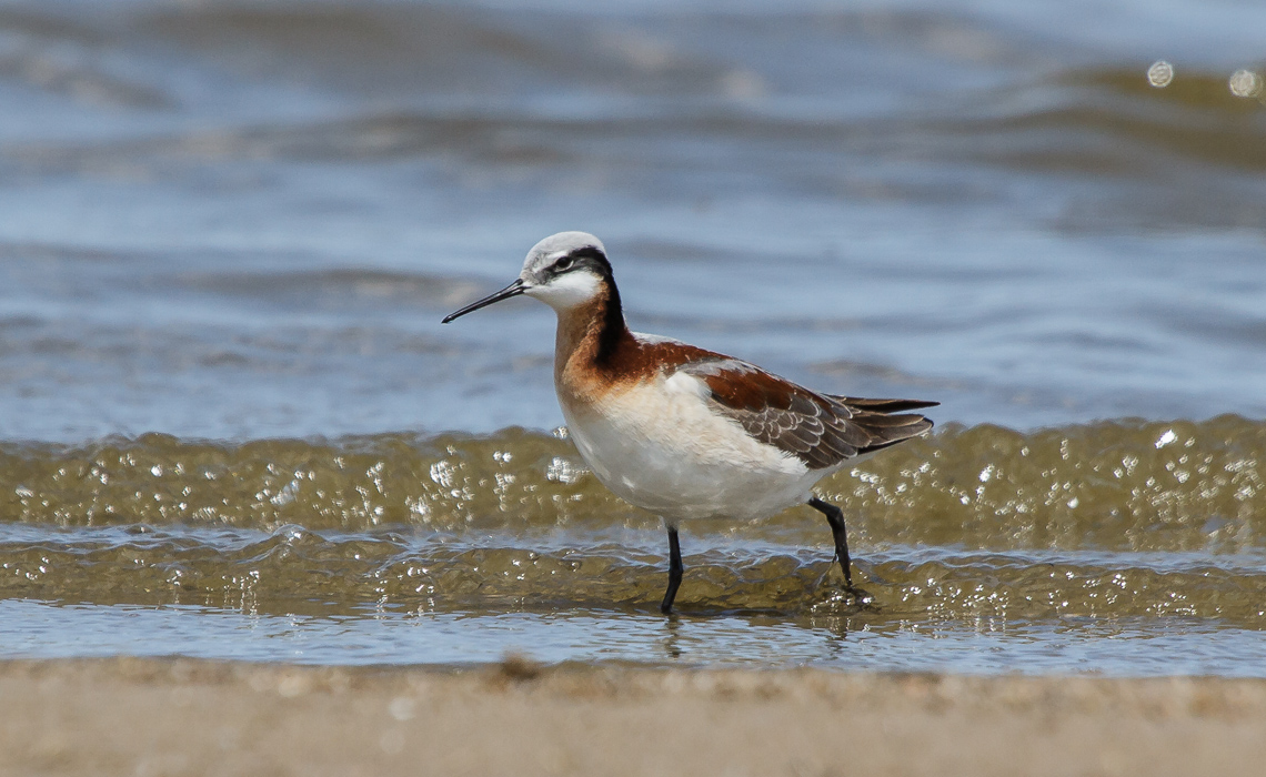 | 5 imagesSorry, forgot to post this gallery a week ago. This sequence is of the other shorebird I was able to get photos of, Wilson’s Phalarope. Bit of a strange name, however it explicitly refers to the lobed feet of the Phalarope genus, which are part of the greater shorebird (Scolopacidae) family. The interesting thing about Wilson’s Phalarope is that the females, rather than the males, tend to be flashier and more colorful. Males tend to be an overall rusty reddish color, where as the females have a mix of rusty reds, tans, browns, blacks, grays, and white. Every photo in this gallery is of females.