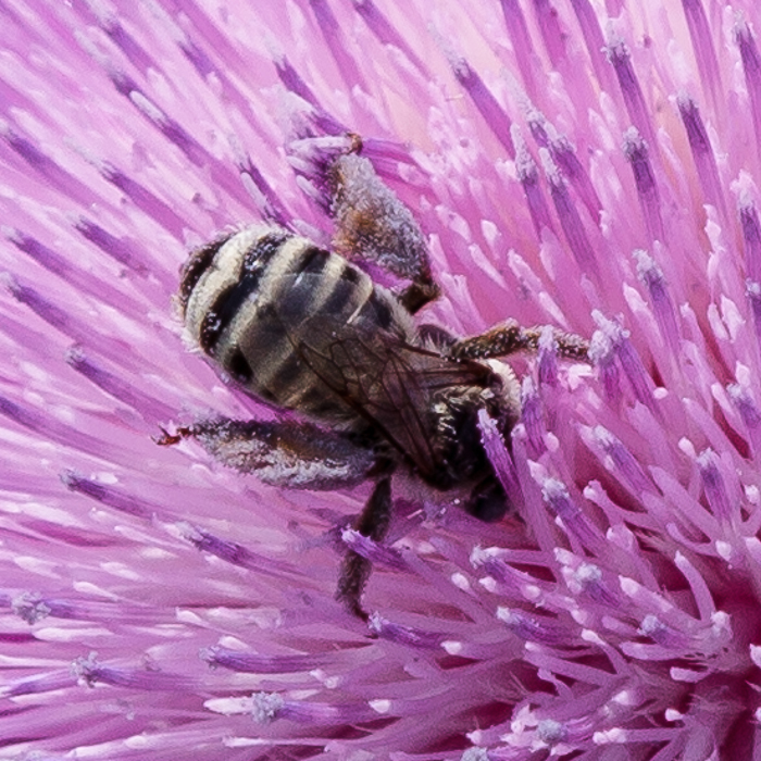 Every time I do something with this lens…things I’ve done before, with a number of other telephoto lenses, but new for this lens…I am simply blown away by its sharpness. A closer crop of the photo with the bee is shown below: