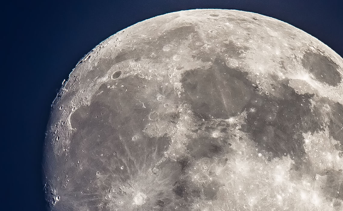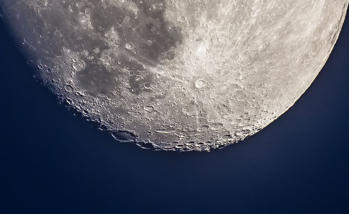 I think, contrary to popular opinion, you can’t actually get a nice “midnight blue” sky at midnight. By that time, the sky is pretty well and truly a deep black, spotted with stars and the milky way. I think a true midnight blue occurs maybe an hour after sunset, during “blue hour” or astronomical twilight. Even at that time, however, if you try to photograph the moon and make that deep blue sky visible, you would probably need a camera with 20 stops of DR. The best time to get a deep blue sky behind the moon is shortly after sunset.