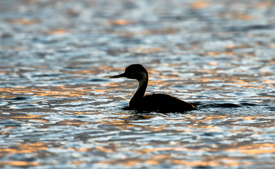 | 7 imagesIn line with my previous blog, Flight of the Gulls, I found more photos I should have given more of a chance. Taken on the same day, these silhouettes of gulls, grebes, and ducks all came out too dark and too noisy. That is, until I decided to simply do away with any bird detail, and take advantage of the silhouettes they really were. Sometimes shooting from the back side of a bird, against the sun, presents unique opportunities to create a different kind of art. I’m rather pleased with how all these turned out, given the otherwise poor quality of the originals. In particular, I really love how grebes look when silhouetted against sunset reflecting waters. Of them all, my personal favorite is the first and featured photo. I just love the delicate variety of colors in the water, and the pose of the grebe.