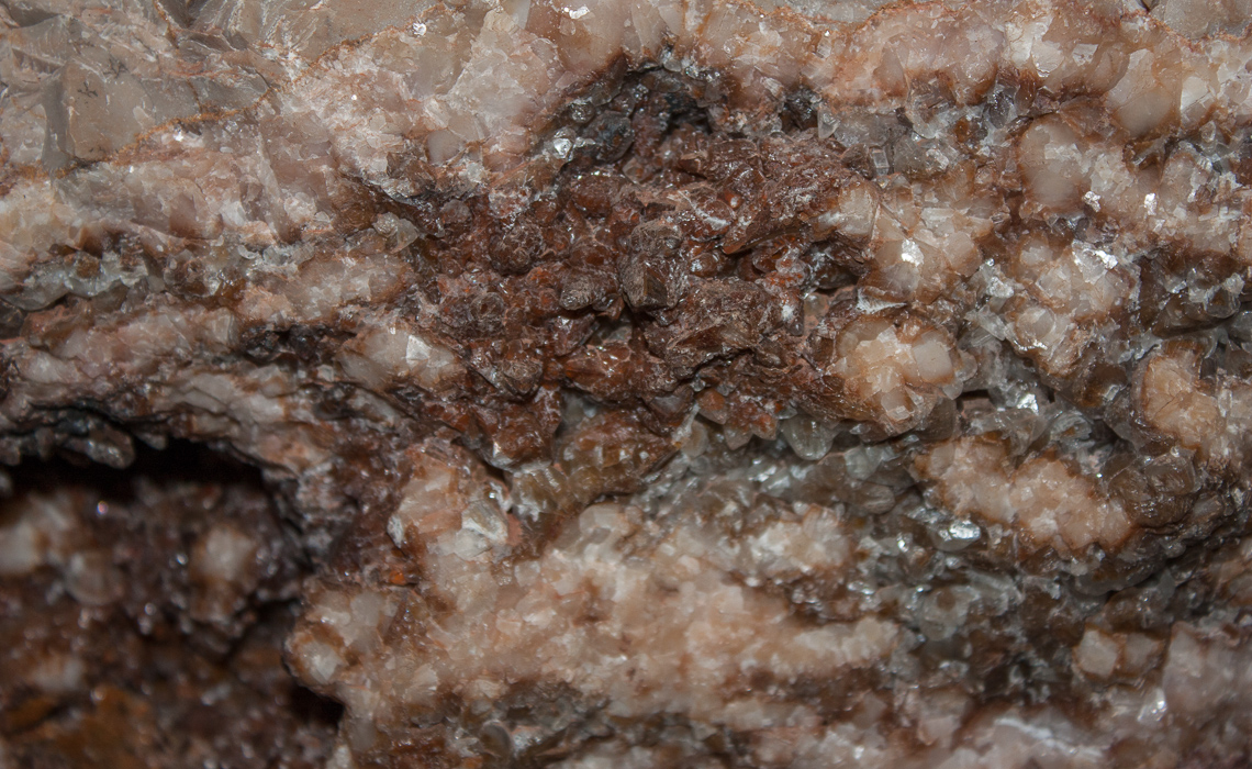 Jewel Cave was the second cave we visited. Jewel Cave, while smaller in extent, was more beautiful. Wind cave had a rather monotonous appearance, boxite everywhere, brown and brown and brown. No stalactites or stalagmites. Jewel Cave, on the other hand, truly lived up to it’s name: The walls, many tens of thousands of square feet worth, were literally covered in jewels. Dogs Tooth was the most common, sometimes bare and clear crystal, most often frosted. Other crystals were present as well, and in some places stalactites, stalagmites, columns, small “straws”, and curtains flowed over the jeweled cave walls. One intriguing feature, pictured below, is called “Cave Bacon”…a beautiful formation especially when backlit.
