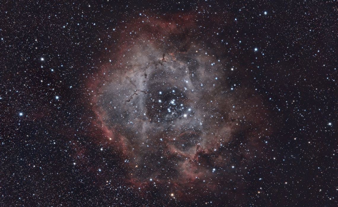 | 2 imagesOne of my first images as a novice astrophotographer last year was the Rosette Nebula. Rosette is so named because it looks somewhat like a rose. My original attempt was decent for a beginner, but this target is extensive, and quite beautiful, packed with intriguing details. I reprocessed that image once, however the data was poor, my processing skills were minimal, and there was only so much I could do with it. I tried a couple of times early winter to image Rosette again, however it is not the brightest object, and again my skills weren’t quite up to the task.