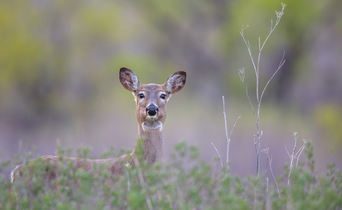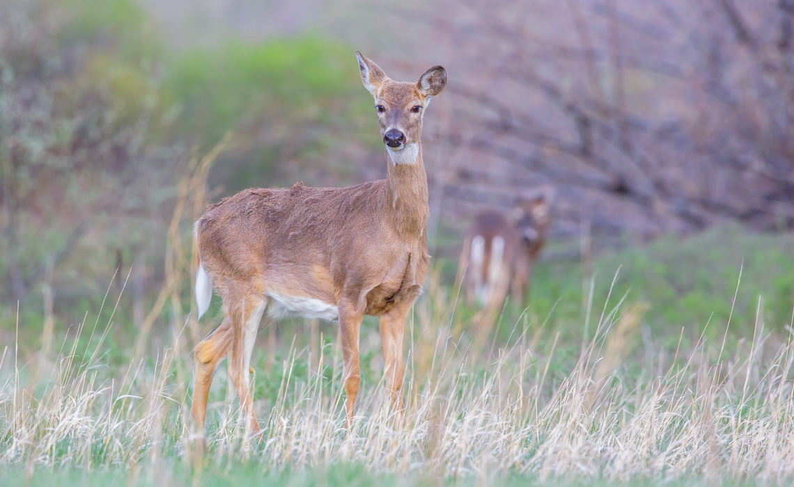 This was one of those rare moments of quiet, serene communion with nature. There was little wind, the light was incredibly soft, the colors were amazing. The deer were beautiful. The contrast of various spring greens, and the grays and browns of the still waning winter, were simply amazing.