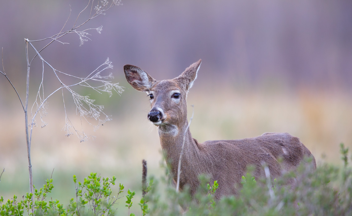 On the way, I noticed a couple of deer laying out in a field, so I pulled over, grabbed my big lens, and trotted out into the field. The deer looked quite content, and there were quite a number more of them than I had originally seen, and I didn’t want to disturb them. I sat down in the field where I was and started to grab some shots with them behind some bushes. I was getting some interesting shots of the deer with blurry foregrounds and the dried up twigs of some past plant, when they all started to get up, one by one, and headed across the field I was sitting in. One by one, they noticed this odd looking creature with a big snout, and in their curiosity, decided to come in for a closer look. Some for a MUCH closer look! At a mere 15-20 feet out these were some of the closest deer have been. One in particular, the young beauty in the first photo here, showed an incredible amount of curiosity, and got so close I couldn’t even focus my lens.