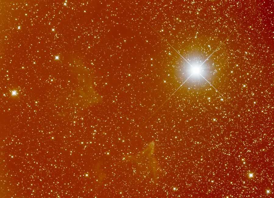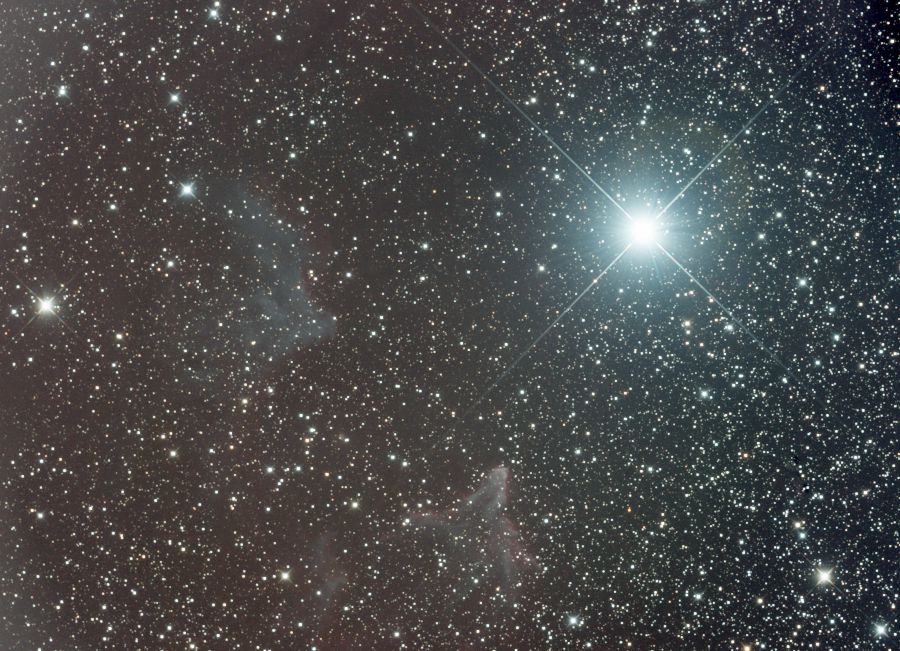 After recombination, you should be able to perform a linked stretch on the image, and see much more balanced color, devoid of any significant color cast (barring any that may come from gradients). In the case of the Ghost of Cassiopeia image from above, after fitting and recombining, the linked stretch looked like this:
