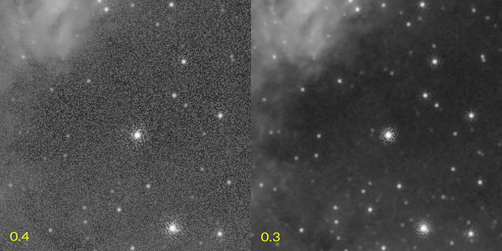 Once you have found your initial global dark setting, you will want to clean up those worms and webbing artifacts. This simply requires giving Global bright a value other than zero. You can start at 0.1, and see if that eliminates the worms and webbing. It very likely will, as a value of 0.1 is quite high for global bright. You may also notice that it pretty much eliminates the deconvolution entirely, leaving only very slight reductions in some of the bigger stars. You will want to reduce global bright by say 0.01 bit by bit until you start seeing the benefits of deconvolution. Keep reducing the value until you begin to see worms or webbing appear again, then bump it back up by 0.01.