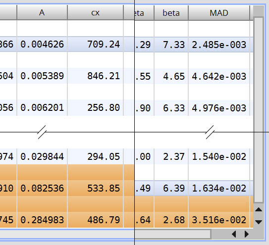 Once you have sorted, find the MAD column in the PSF list. It’s the last column. You should find that the stars with the smallest MAD are at the top of the list, while the stars with the largest MAD are at the bottom of the list. The smaller the MAD is, the better, as this represents the error between the selected modeling function (Gaussian, Moffat, Lorentzian) and the actual measurements of the star in the image. You want to keep the stars with the smallest error, and remove the stars with the largest error.