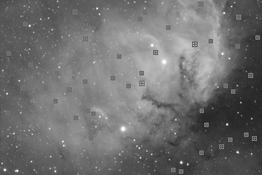 Picking from the central region of the field is best, although try to make that region as large as possible without selecting defective stars. Deconvolution of this manner is designed to redistribute blurred energy and restore original sharpness as best as possible. Select up to around 40-50 stars or so, perhaps more if you find you are getting a lot of Gaussian and Moffat10 stars. To select a star, you simply need to click it in the image. If a proper star is detected there, it will be added to the list for that image in DynamicPSF.